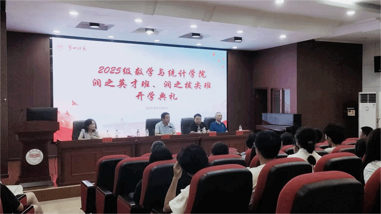 为帮助2025级“润之英才班”“润之拔尖班”新生找准发展定位、明确成长方向,9月28日下午,数学与统计学院在城南书院校区图书馆一楼报告厅隆重举行2025级“润之英才班”“润之拔尖班”开学典礼。我院院长陈爱永、副院长杨旭光、各系主任、资深指导老师及班主任受邀出席。新生辅导员及2025级润之班新生参加了本次大会,会议由我院党委副书记申鸣凤主持。