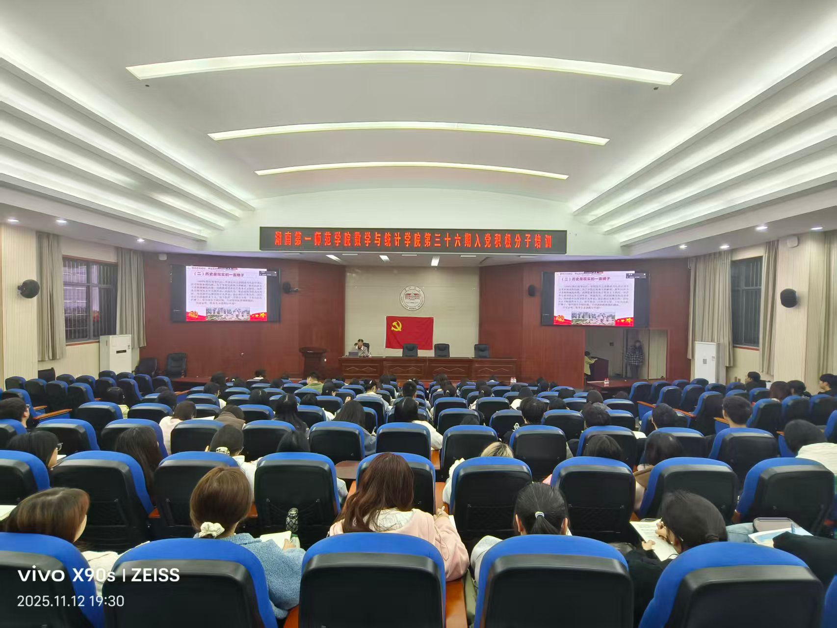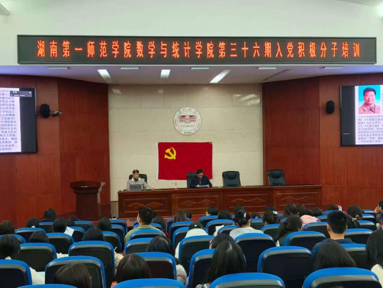 2025年11月12日,数学与统计学院“育人·育才讲坛”成功举办。论坛特邀中南大学马克思主义学院曾长秋教授作“坚定对党的理想信念”主题的专题报告,我院党委书记阮东彪主持报告会。我院100余位师生代表出席。本次党课紧扣理想信念主题,分四个部分系统展开,教育引导广大师生胸怀远大理想、牢记初心使命、掌握科学理论、勇担时代重任,取得了良好成效。