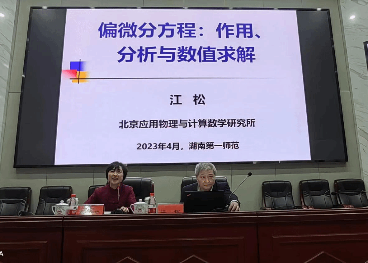 4月8日,应湖南第一师范学院数学与统计学院邀请,中国科学院院士、国家自然科学基金委数理学部主任、北京应用物理与计算数学研究所江松研究员莅临我校讲学,作题为《偏微分方程:作用、分析与数值求解》的学术讲座。会议由童小娇教授主持。