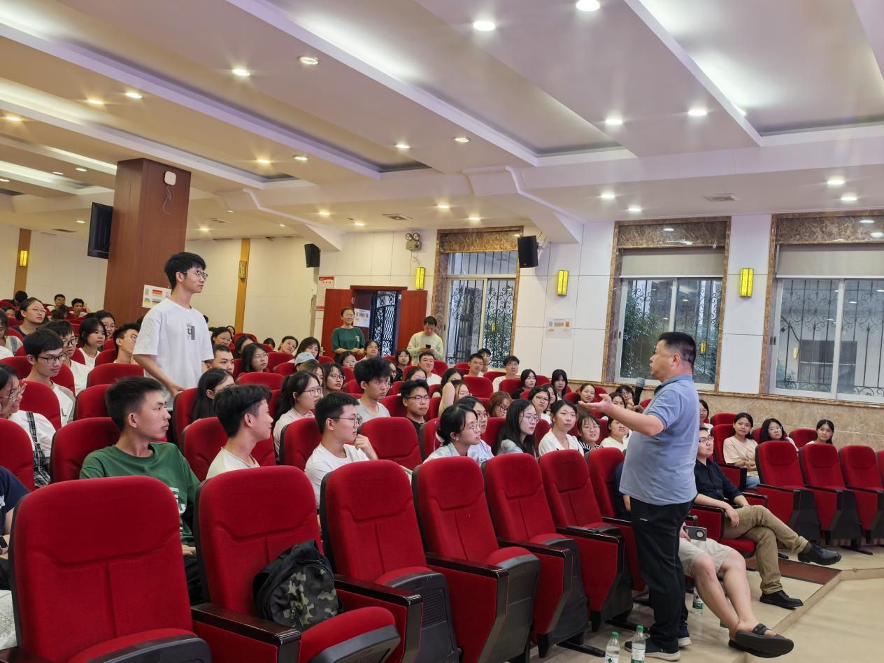 陈爱永以高站位、宽视野为引领,通过详实的数据支撑与鲜活的案例呈现,为新生们系统梳理了学院的发展脉络、学科建设布局、师资队伍实力及人才培养目标。从学院深耕多年的办学积淀到与时俱进的专业优化,从德才兼备的师资团队到“厚基础、强实践、重创新”的育人理念,整个讲解既勾勒出学院发展的宏观图景,又传递出对新生“以专业为舟、以奋斗为桨”的殷切期许,帮助同学们快速建立起对学院的整体认知,更在心底种下“与学院共成长”的温暖种子。