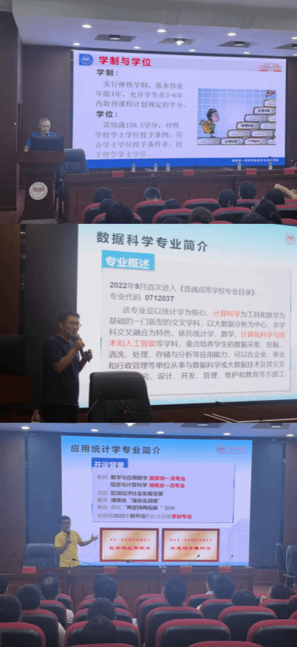 各专业系主任依次登台,为新生们开启专业认知的“第一课”。赵清贵老师、颜斌老师、张艳明老师立足本专业特色,围绕培养方案设计、课程体系架构、实践平台搭建及未来发展方向等核心维度,以深入浅出的语言、贴近实际的案例,既回应了新生“学什么”“怎么学”的现实关切,更以专业视角为同学们的学业规划指明了清晰路径。讲解中既有学科前沿的视野拓展,也有扎根基础的务实指导,让新生们对即将开启的专业学习有了更具体的期待与更坚定的信心。