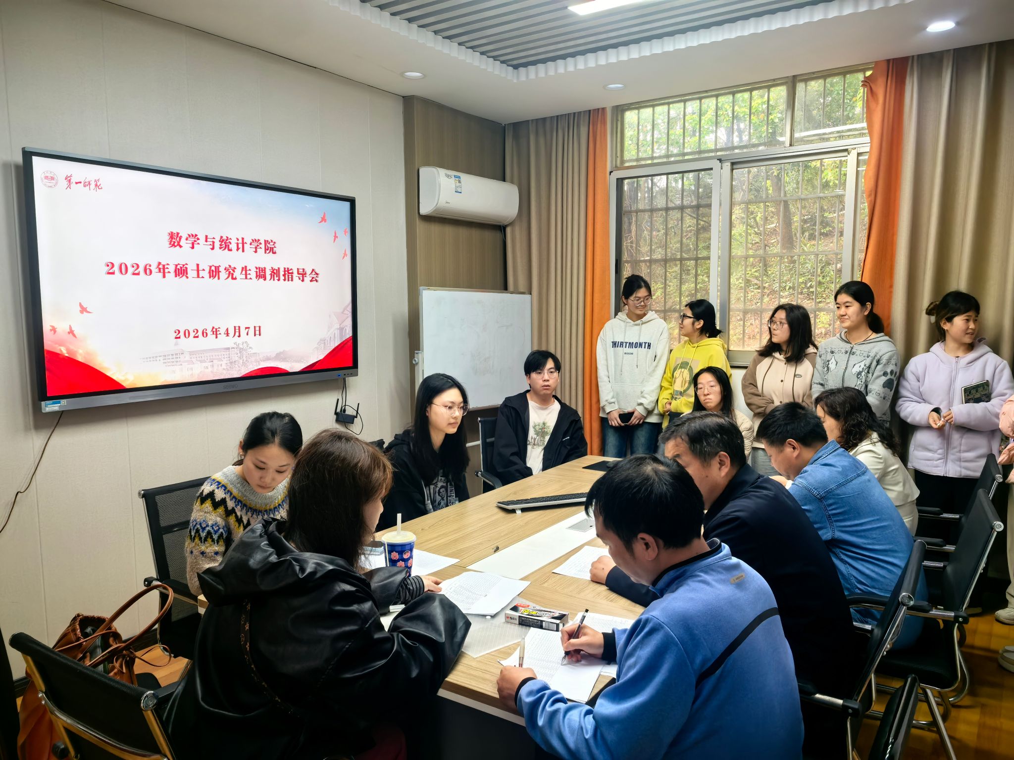 为精准助力我院考研学子把握调剂机遇、明晰备考思路、科学规划升学方向,切实解决考研学生调剂过程中的实际问题,4月7日下午,湖南第一师范学院数学与统计学院在学院205会议室召开2026年硕士研究生调剂专项指导会。我院院长陈爱永、党委副书记申鸣凤,张更容教授、颜斌主任及彭晨嘉、王乐瑶老师出席会议,与15名有调剂意向的应届毕业生面对面交流,为学子升学之路全力保驾护航。