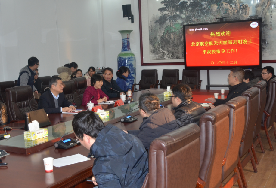 12月27日上午,北京航空航天大学郑志明院士应邀莅临我校座谈交流。座谈会在校行政一楼会议室举行,校长童小娇教授出席并主持座谈会,来自数计院、工程技术研究中心教师代表以及学生代表40余人参加了本次座谈会。