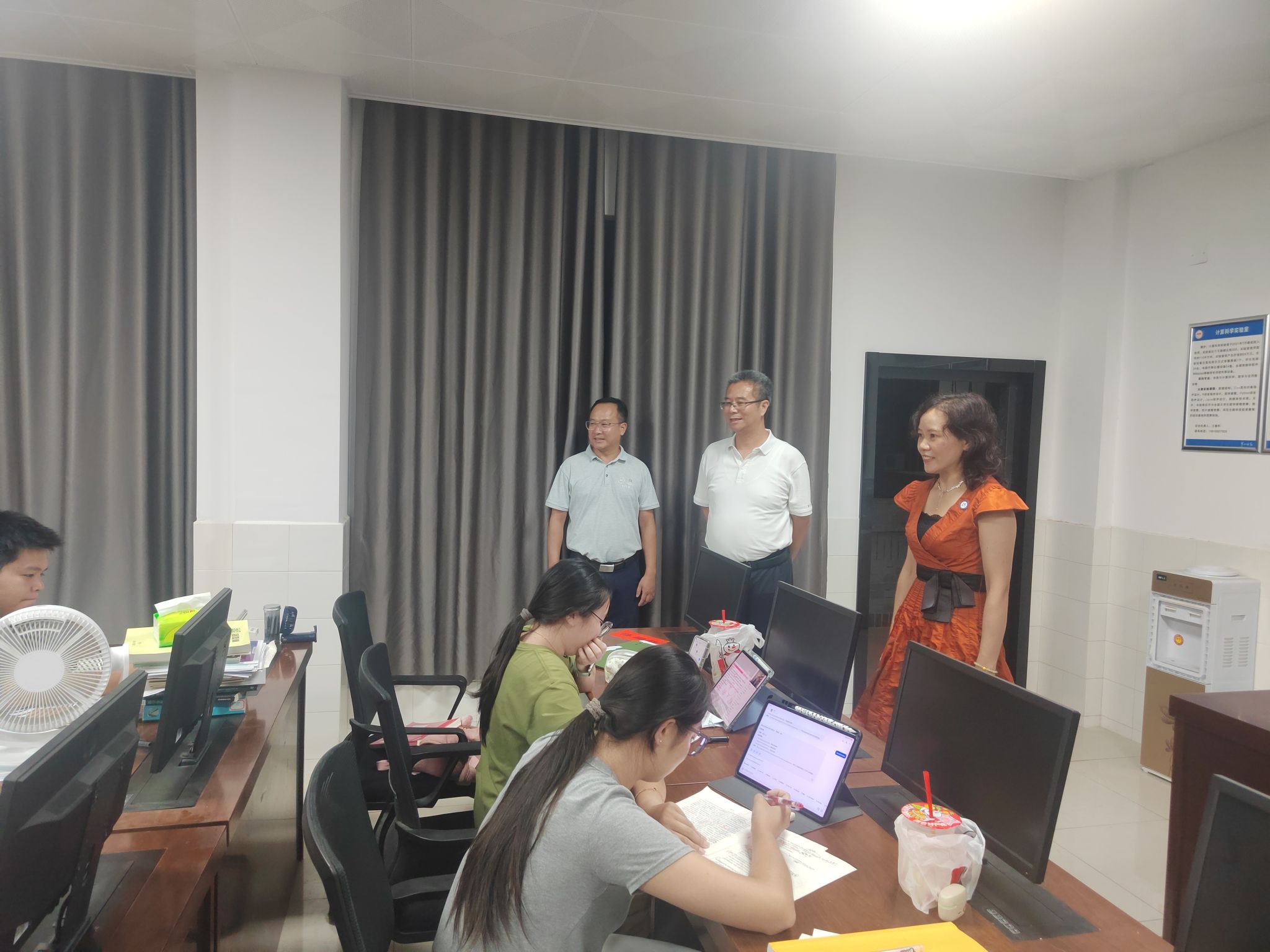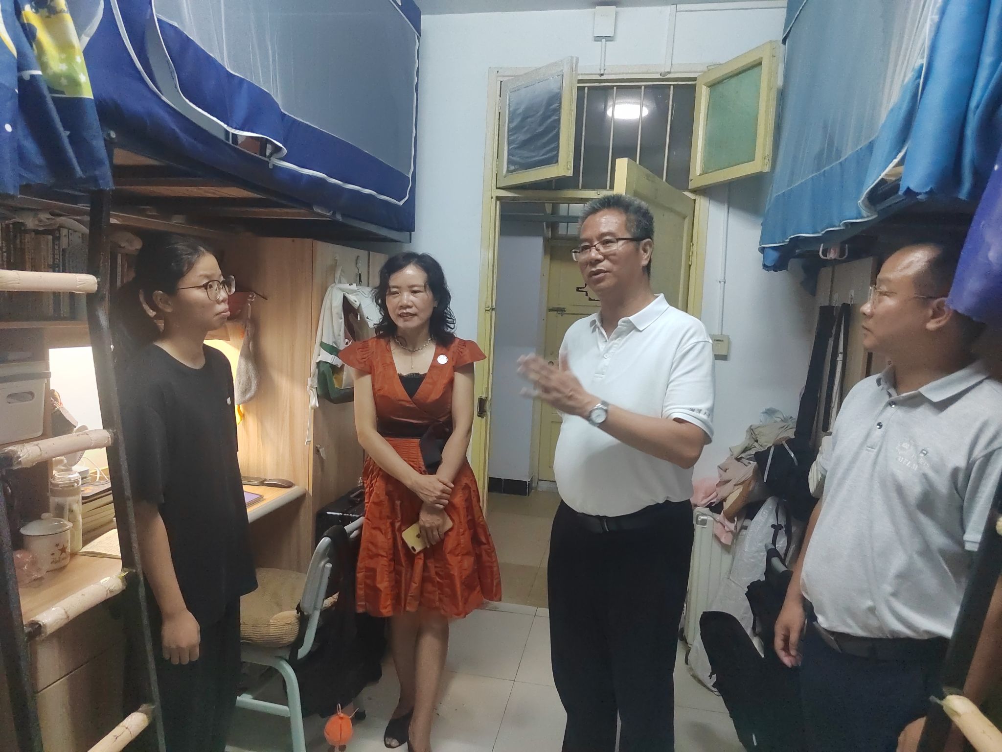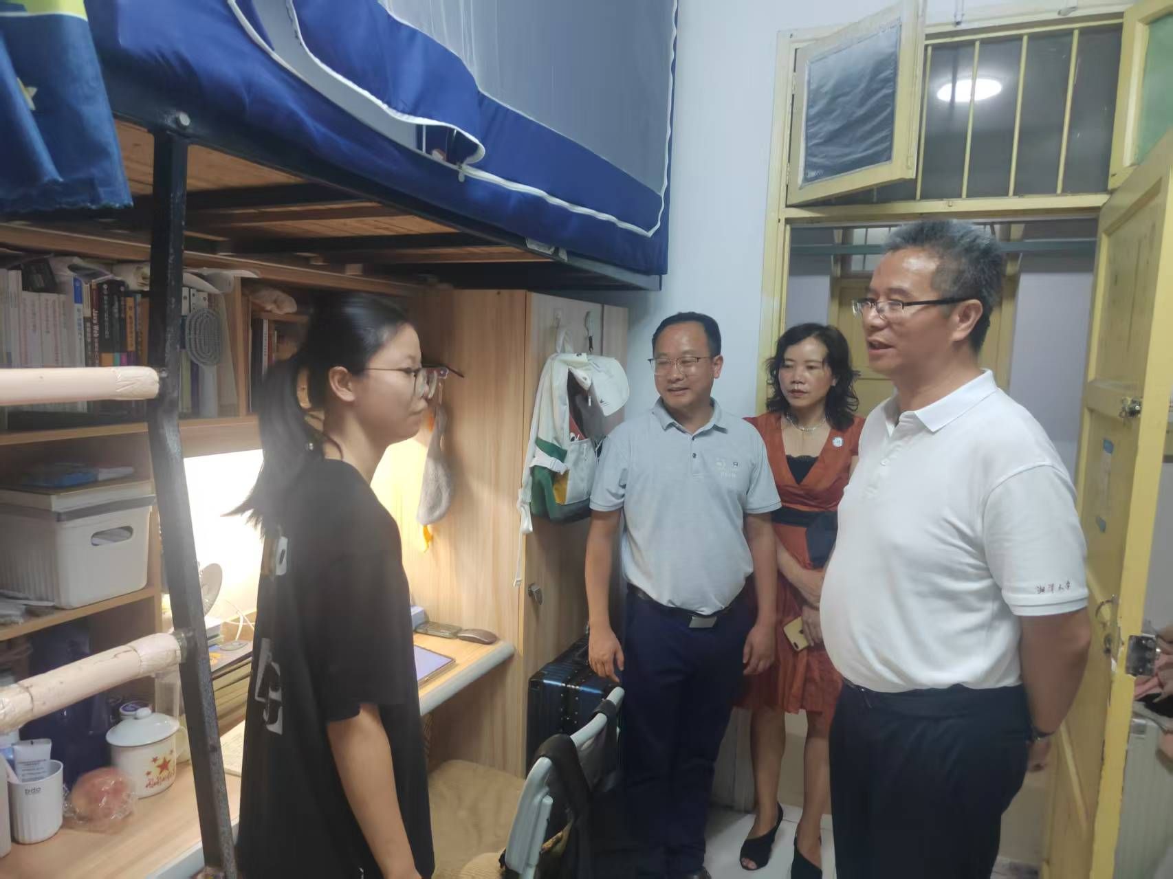 9月16日晚,校长喻祖国在学工处副部长付焱、数学与统计学院党委副书记申鸣凤、学工办副主任毕倩等陪同下,深入学思苑学生社区开展走访调研。一行人先后走进学生寝室和考研自习室,与同学们亲切交谈,详细了解大家的日常生活、学习状态及备考情况。