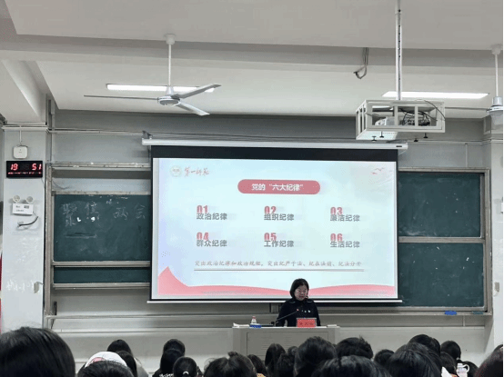 陈天涯重点围绕新修订的《中国共产党纪律处分条例》,系统解读了政治纪律、组织纪律、廉洁纪律、群众纪律、工作纪律、生活纪律等“六大纪律”核心要求,结合青年学生成长实际,梳理常见纪律风险点,提醒大家时刻自重自省自警自励,扣好廉洁从政、廉洁修身的“第一粒扣子”。