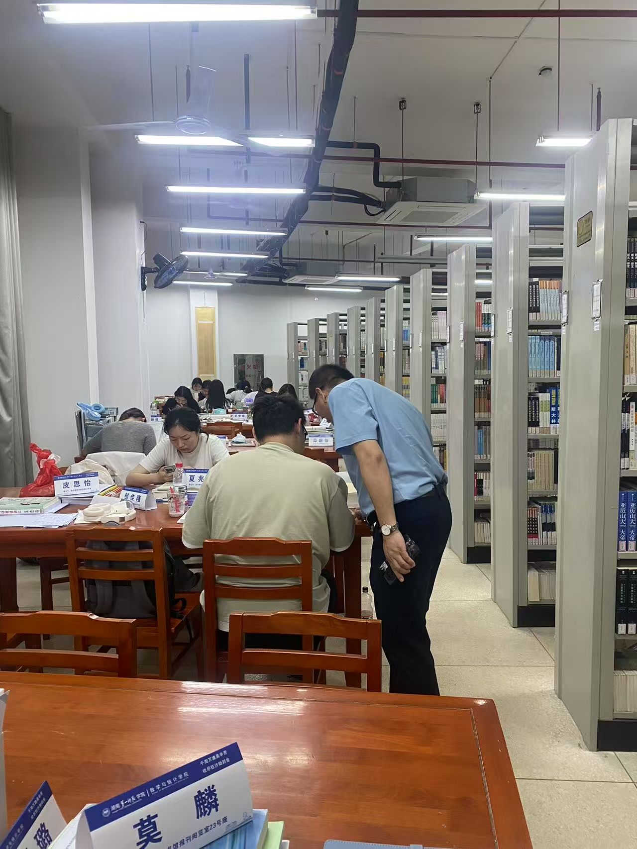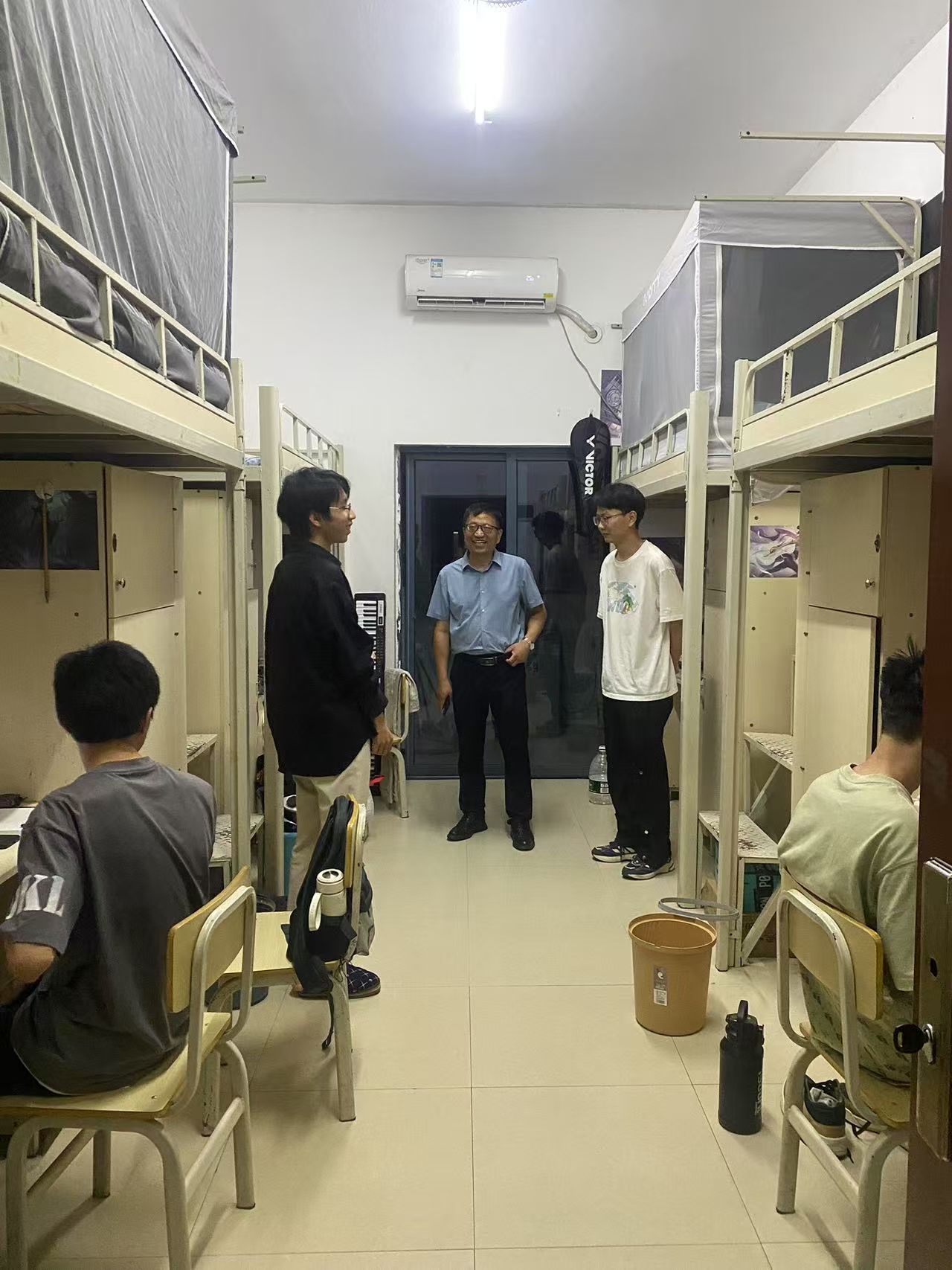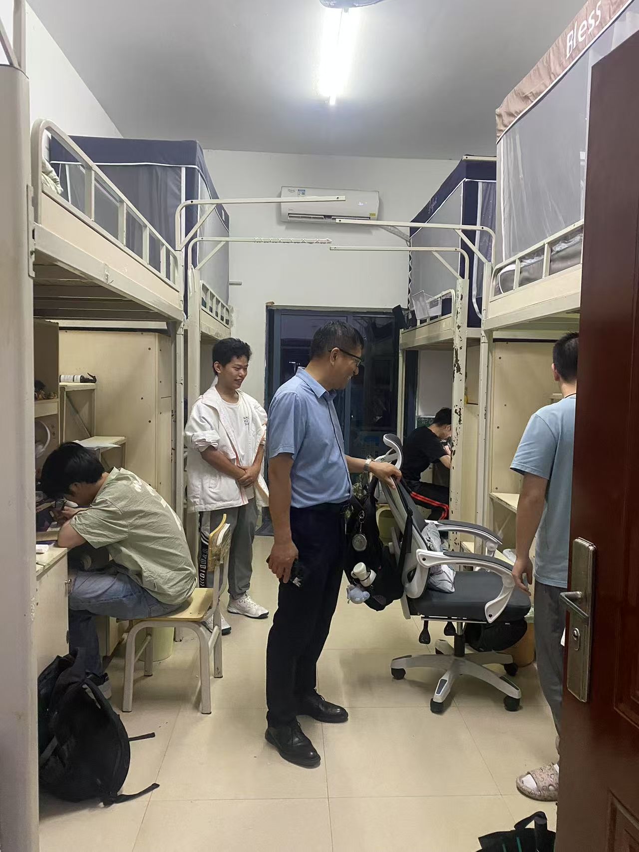 书记下寝 | 书记面对面,共话学风新生态 发布时间:2025-05-26 作者: 浏览次数:次 5月26日晚,数学与统计学院党委书记阮东彪组织辅导员进行学风专项督导,实地走访学生宿舍及图书馆自习区。在检查自习区的过程中,阮书记针对同学们的学习状态提出针对性建议,在查寝过程中指导学生通过晚自习时段系统梳理知识结构、强化专业核心素养,并倡导建立互促共进的学习小组,以科学规划提升时间利用率,合力构建勤勉笃行的学习生态。