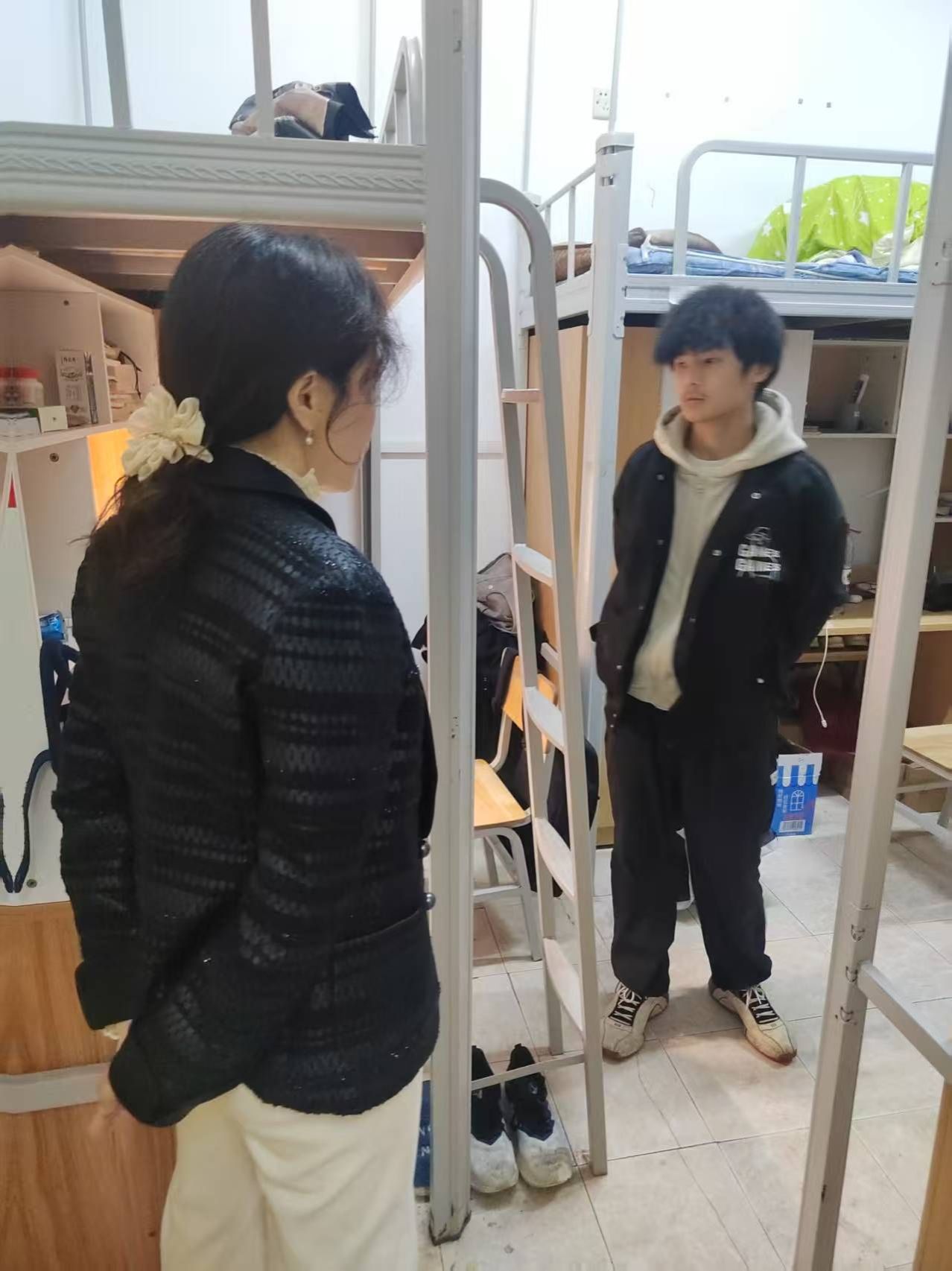 书记下寝 | 新学期,新气象!数统学院领导深入一线关怀学子 发布时间:2025-02-28 作者: 浏览次数:次 2月28日下午,数学与统计学院党委副书记申鸣凤带领辅导员在城南校区查课,学生“三率”达标,课堂井然有序,随后走访了学生寝室,叮嘱同学们要做好学习规划,提高对自己的要求,珍惜时间,充实自己。